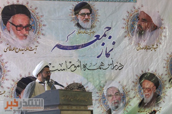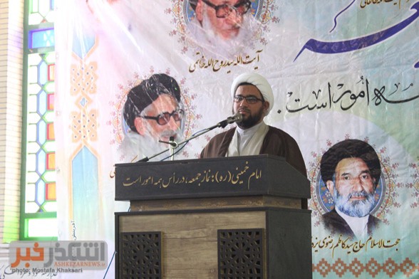 حجت الاسلام و المسلمین صبوری، عضو جامعه مدرسین حوزه علمیه قم، سخنران ویژه این مراسم بود که به اثر نماز جمعه در جامعه اسلامی اشاره کرد.