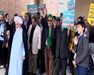 به گزارش خبرنگار اشکذرخبر از خضرآباد، بعد از سخنرانی جنجالی دونالد ترامپ، رئیس جمهور آمریکا درخصوص اشغال قدس و ایجاد پایتخت رژیم صهیونیستی در آنجا، نمازگزاران خضرآبادی نیز مانند مسلمانان سراسر جهان بر علیه این اظهارات، مسافت میعادگاه نماز جمعه تا محل گلزارشهدای این شهر را با سردادن شعار هایی همچون «مرگ بر آمریکا» ، «مرگ بر اسرائیل» و «مرگ بر فتنه گر» راهپیمایی کردند.
