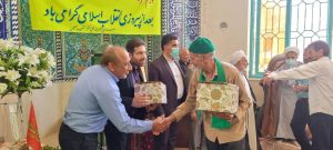 به گزارش اشکذر خبر؛ همزمان با چهلمین سالروز اقامه نماز جمعه در بخش خضرآباد و پنجم مرداد سالروز اقامه اولین نماز جمعه در تهران به امامت مرحوم آیت الله طالقانی با حضور امام جمعه بخش خضرآباد، روح الله دایی فرماندار شهرستان اشکذر، حجه الاسلام پورقیومی مسئول اداره تبلیغات اسلامی این شهرستان، نظری مسئول کانون های فرهنگی هنری و باقری رئیس شورای هیئات مذهبی اشکذر از مداحان و پیرغلامان این بخش تجلیل شد.