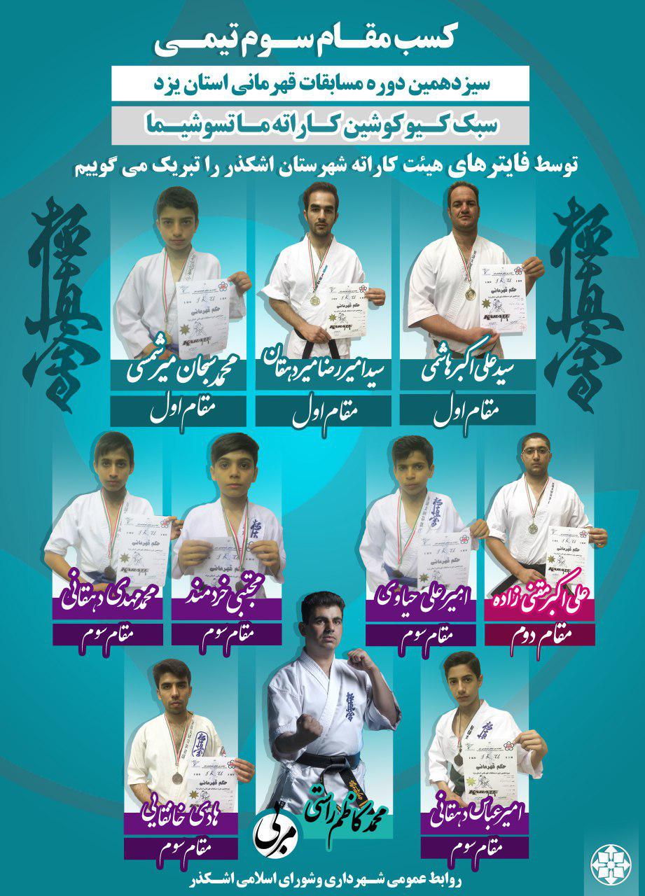 از تیم شهرستان اشکذر سید علی اکبر هاشمی، سیدامیر رضا میردهقان،محمد سبحان میرشمسی ،مقام او ل و امیرعلی حیاوی، مجتبی خردمند،علی اکبر مقنی زاده ومحمد مهدی دهقانی رتبه دوم و امیرعباس دهقانی وهادی خانقایی مقام سوم این سری از مسابقات را کسب کردند.