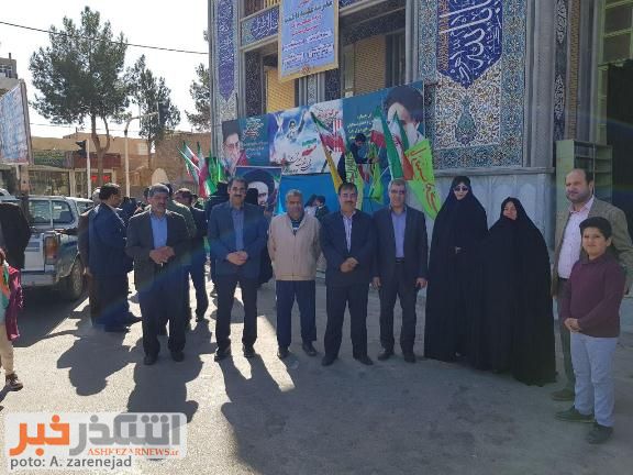 مردم اشکذر در صفوف بههمپیوسته از میدان بسیج راهپیمایی خود را آغاز و با حرکت در خیابان امام در میدان مسجد الرضا تجمع کردند.